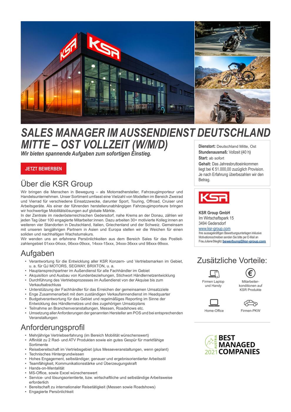 News Stellenausschreibung Sales Manager im Außendienst Deutschland Mitte/Ost (m/w/d)